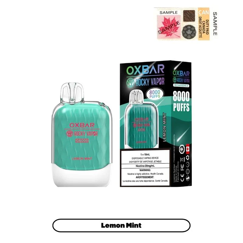 Achieve impeccable nicotine vaping with the Rocky Vapor OX BAR G-8000. This device is pre-filled with 18 ml of liquid containing 20 mg of nicotine, capable of providing up to 8,000 puffs. Rejoice in your vaping journey knowing that you are relying on a product of the highest quality.