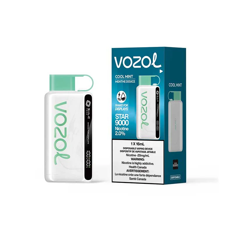 Discover the VOZOL Star 9000 Disposable, featuring 9000 puffs, 16mL E-Liquid, 650mAh battery, S.i.L.C technology, shake-to-display OLED screen, and mouthpiece protection. Nicotine Strength: 20mg (2%)   VOXOL 9000 Features/Specs: E-liquid contents: 16mL Nicotine Level: 20mg Coil: 1.2 Ohm Mesh Coil Puffs per Device: up to 8000 Battery: 650mAh, rechargeable via type-c